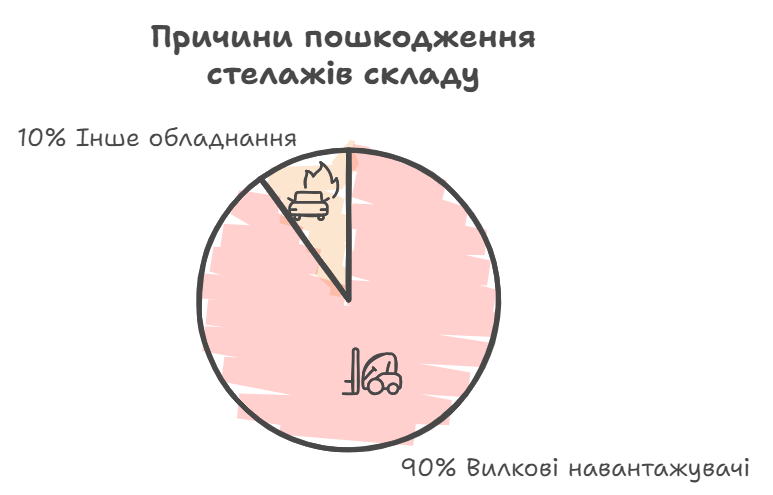 3. 90% пошкоджень стелажів відбуваються через вилкові навантажувачі